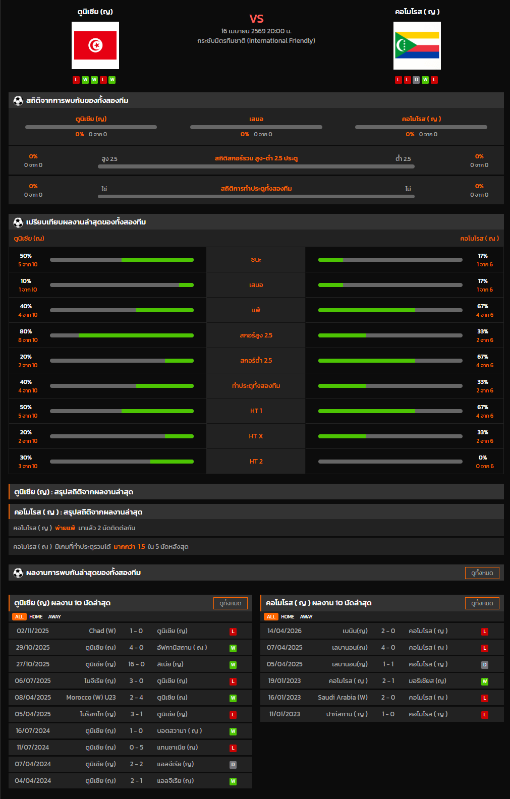 วิเคราะห์บอล กระชับมิตรทีมชาติ 2026 ตูนิเซีย (ญ) VS คอโมโรส ( ญ )