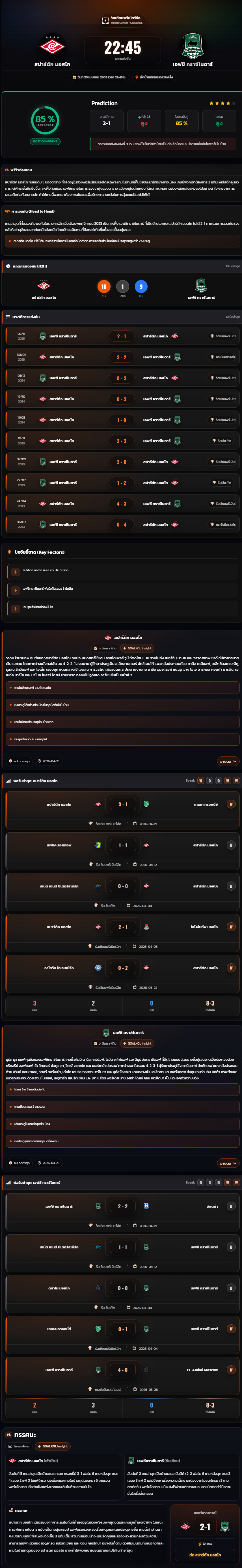 วิเคราะห์บอล รัสเซีย พรีเมียร์ลีก 2025-26 สปาร์ตัก มอสโก vs เอฟซี คราซ์โนดาร์